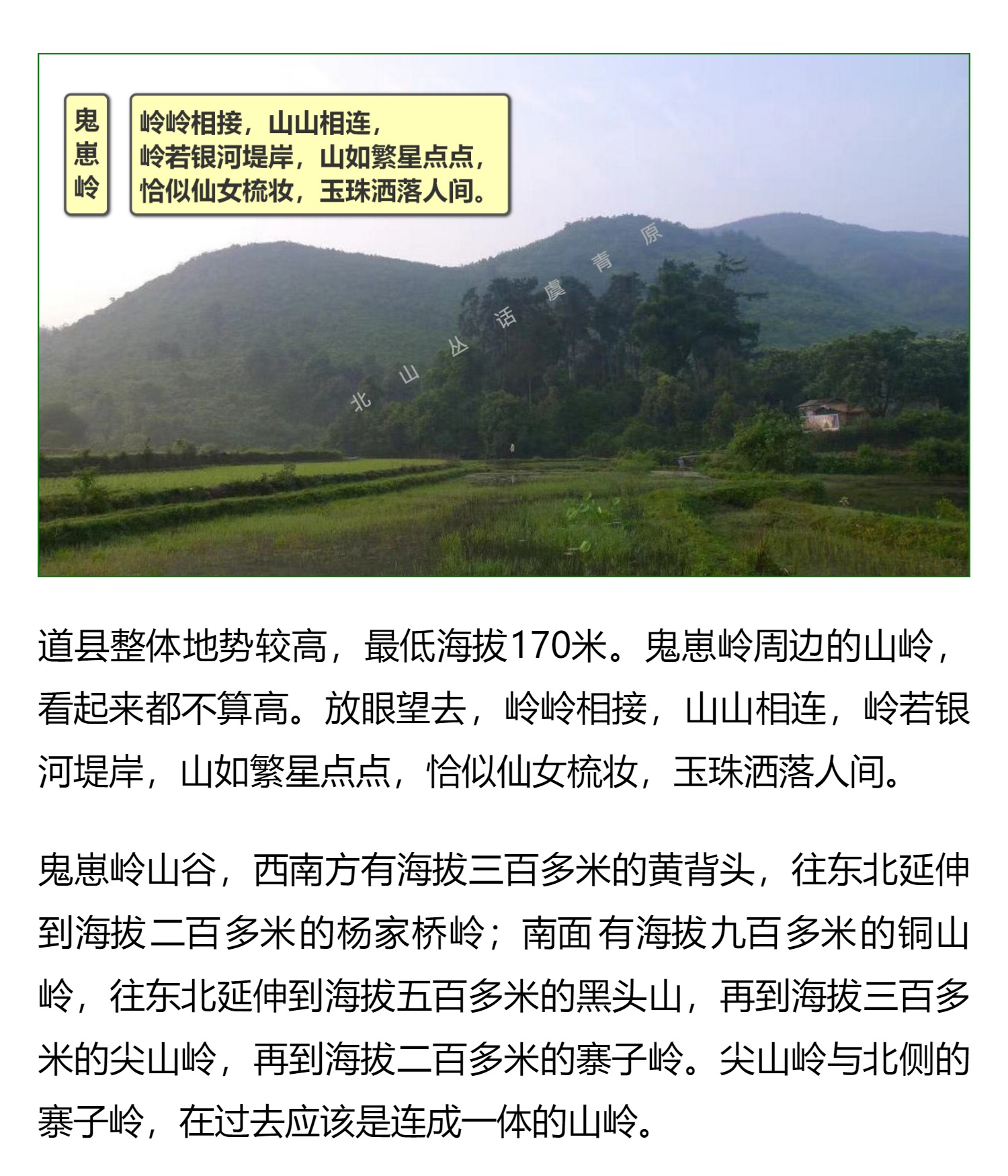 道县整体地势较高,最低处海拔170米。鬼崽岭周边的山岭,看起来都不算高。放眼望去,岭岭相接,山山相连,岭若银河堤岸,山如繁星点点,恰似仙女梳妆,玉珠洒落人间。