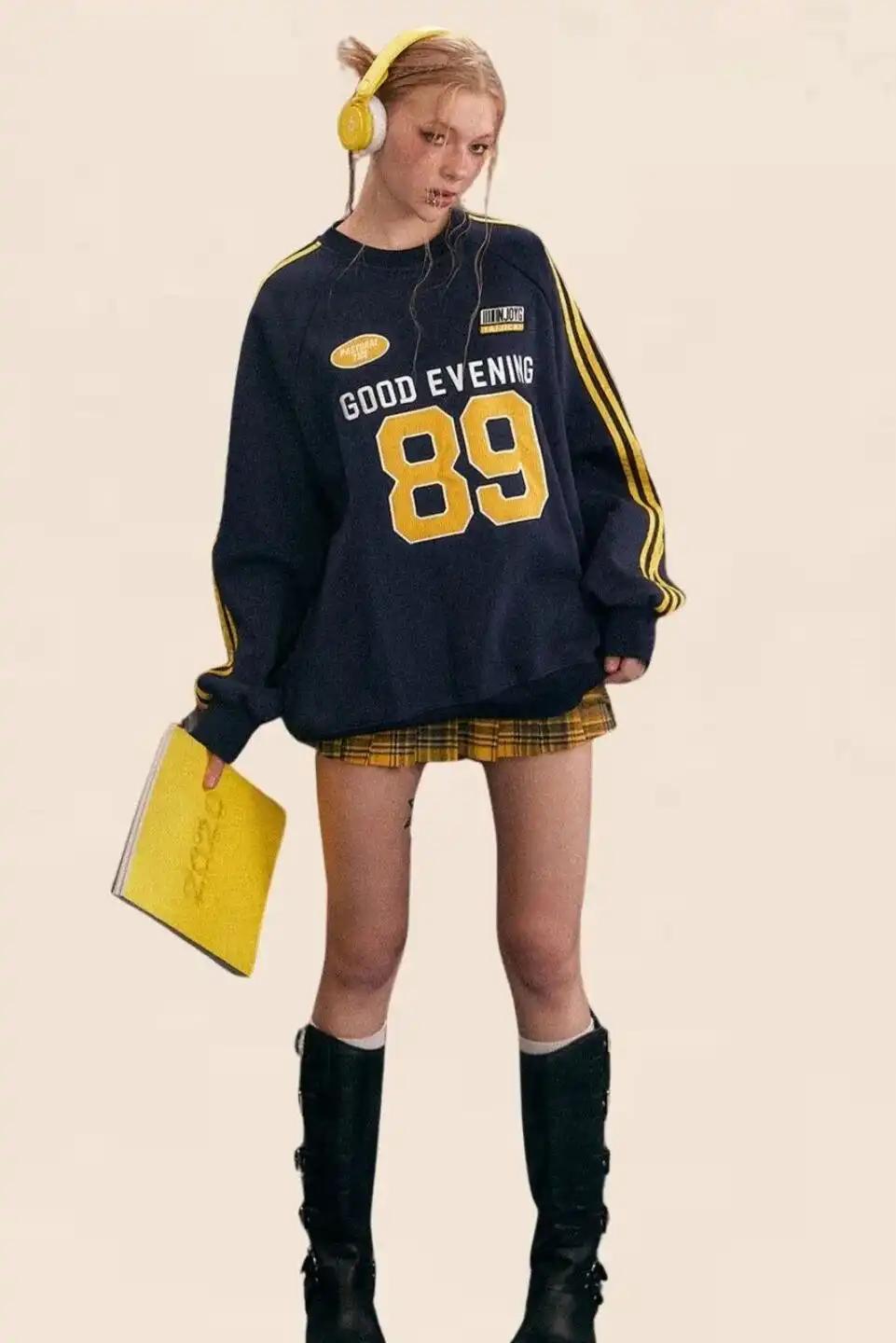 通过搭配字母卫衣、短款夹克和运动鞋等标志性单品,再加上巧妙的色彩搭配和单品组合,就能够轻松地打造出时尚又舒适的复古运动风造型,展现出自己独特的时尚品味。