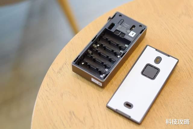 打开门铃的背部可以发现它需要六节五号电池才能驱动,并且从官方来看这六节电池能支持约 4 个月的使用时间。或许有朋友会说频繁更换电池很麻烦,有没有内置锂电池那种解决方案。其实这款门铃支持两种供电方式,其中一种则是电池供电,另一种则是外接电源供电,也就是我们看到的这两颗螺丝,只需连接电源线即可单独供电。如果你觉得四个月换电池过于麻烦,这个外接供电的方式其实可以考虑。