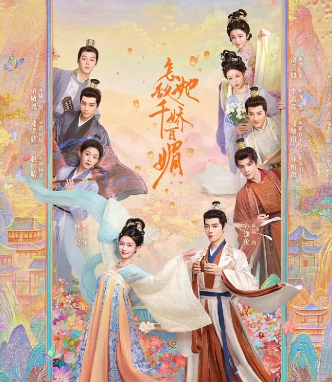《怎敌她千娇百媚》改编自伊人睽睽的同名小说。故事的主角是落魄士族女罗令妤(林允饰),她父母双亡、家道中落,为摆脱寄人篱下的生活,带着妹妹去建业投靠表亲陆家。途中与陆家三公子陆昀(方逸伦饰)因误会结怨,例如罗令妤阴错阳差将陆昀赶下船。重逢后,罗令妤被陆昀的风度才华吸引,陆昀却认为她自私冷漠、攀权附贵,对她的示好不屑一顾。随着相处增多,两人在困境中逐渐产生情愫,共同面对士族与庶族的矛盾。罗令妤在协助陆昀过程中,意识到女子应掌握自己命运,于是开办花坊创立事业,最终收获爱情与成长,两人携手化解重重困难,收获幸福。