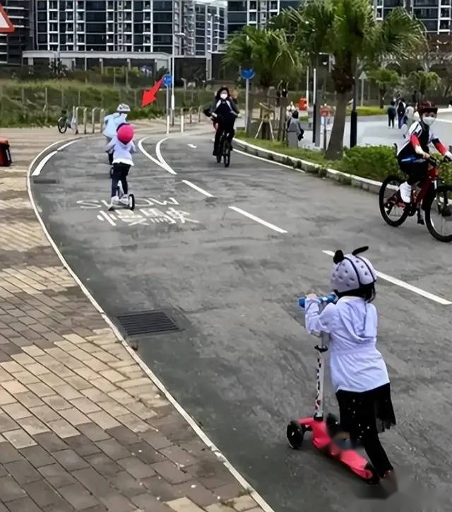 两个小姑娘没有千金小姐的架子,而是一个背着书包另一个拽着妈妈手的温馨画面。