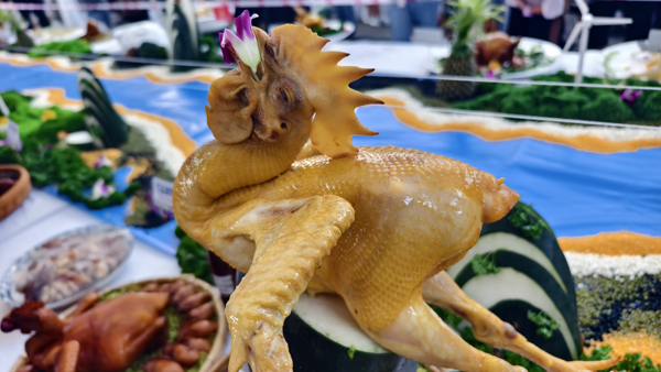 广西名厨委主席闭思维现场点评竹盐鸡参展作品“豉蚝鸡”