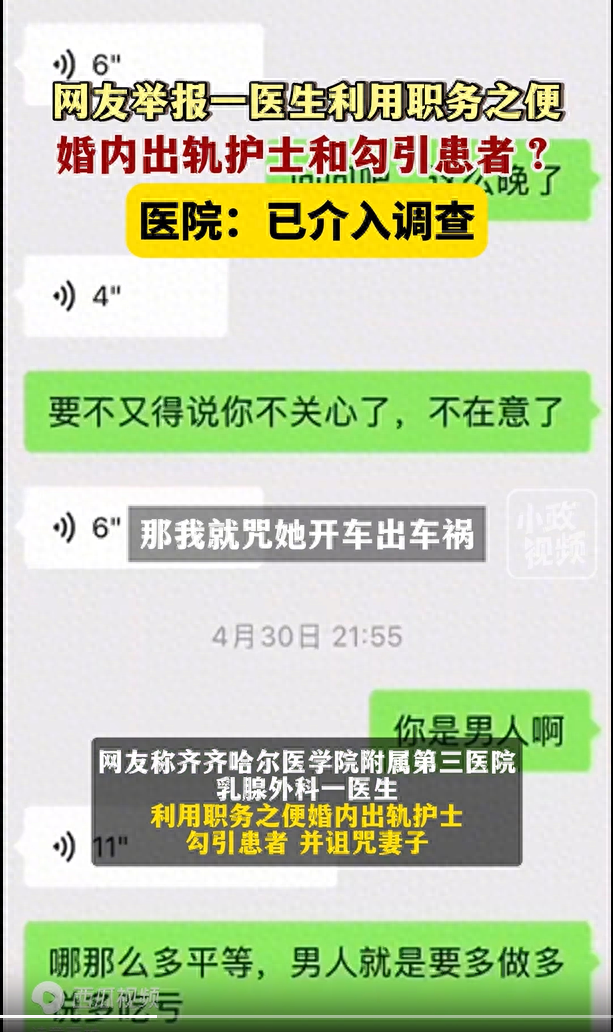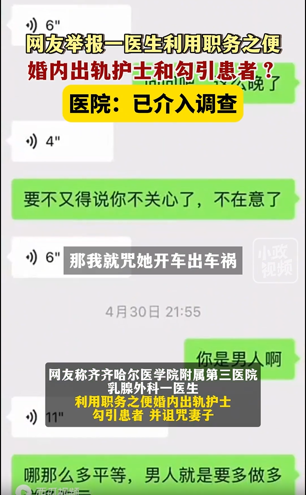细细看后才发现,这竟然是,黑龙江齐齐哈尔市医学院附属三院,乳腺外科主任,与同科室的护士的,露骨撩骚记录。
