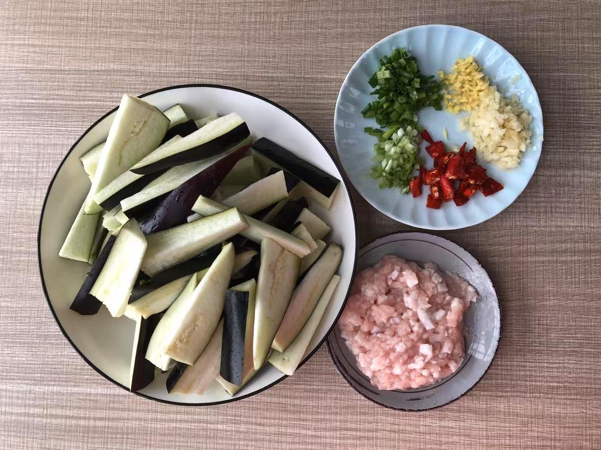 - 将茄子洗净,去蒂,切成约5厘米长的条状。然后放入盐水中浸泡10分钟,这样可以有效防止茄子氧化变黑,同时也能减少吸油量。