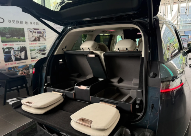 与两吨级电动拖车钩搭配的,还有 300kg 承重的电动天地门与二排双 180° 电动可旋转座椅,二者共同提升户外场景使用体验。电动天地门支持电动升降,在露营场景中,降下天地门即可作为钓台或野餐桌使用,无需额外搭建桌椅,简化户外准备流程。二排座椅配合可前后滑动的第三排座椅,能实现 1.7 米的间距,家庭成员可在车内面对面交流,家长给孩子递取奶瓶、零食,或进行亲子互动,无需起身,使车辆成为提升亲子情感的 “第三空间”。当电动拖车钩拖挂房车、游艇等装备出行时,天地门与旋转座椅可与拖挂装备形成场景联动,构建完整且舒适的家庭户外生活场景,满足多样化使用需求。