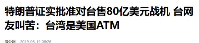 2019-08-19 海外网——特朗普证实批准对台售80亿美元战机 台网友叫苦:台湾是美国ATM