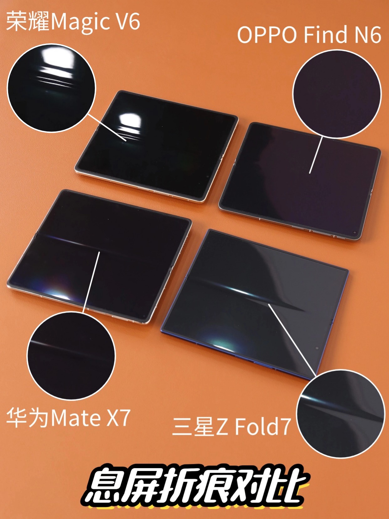 折叠屏的核心体验,绕不开折痕,这四款中OPPO Find N6的表现确实亮眼,息屏时几乎看不到痕迹,展开后屏幕平整得像一块小平板,看视频、刷漫画沉浸感拉满,其他三款也达到了主流控制水准,虽明显但不影响日常使用。