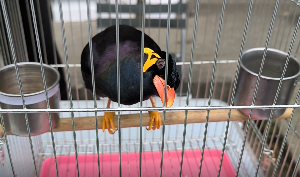 在一家小店前,几只黑色的鸟儿吸引了我。主人说这边通体全黑的是八哥,而黑中闪亮的是鹩哥。他养的这只鹩哥别看只有一岁多,却会说十几句话,最常叨叨的就是“恭喜发财”和“皇上驾到”。这么懂人情世故的鸟儿,谁会不爱呢?