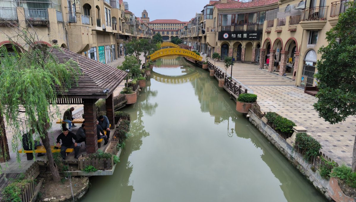 这里没有高楼大厦,没有机器轰鸣,临街店铺还保持着旧民居模样。一对圈椅一副中堂,两个老人坐看行人来往。三五大婶闲坐聊天,谢顶大叔摆局对弈,喜欢安静的则握钓杆,似有似无地盯着水面,全然愿者上钩模样。