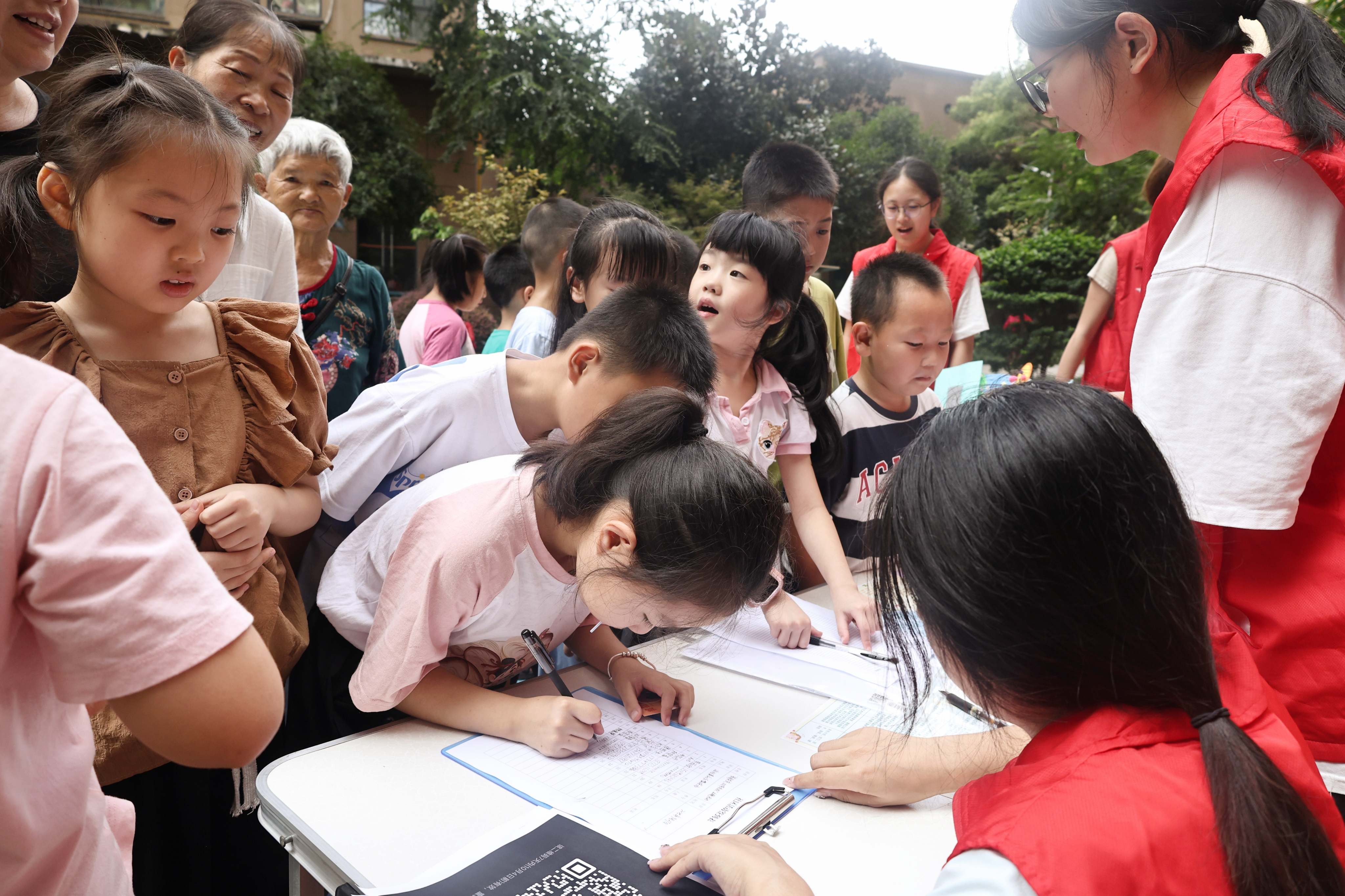 投壶雅趣,答题见智。游戏互动区不仅是欢乐的海洋,更是文化传承与品格培育的生动课堂。投壶游戏前,志愿者将规则讲解与历史渊源娓娓道来,孩子们在聆听中触摸传统。实践环节里,他们站姿端正、凝神聚力,投出的每一支箭矢都凝聚着专注与勇气。在输赢之间,坚韧乐观的品格悄然生长。知识问答区同样意义非凡,题目涵盖家国历史等内容。孩子们排队抽题、朗声作答,每一次自信应答都是知识的积淀,每一枚印章的落下都是对求知热情的嘉许,让爱国情怀与文化自信在欢声笑语中深深扎根。