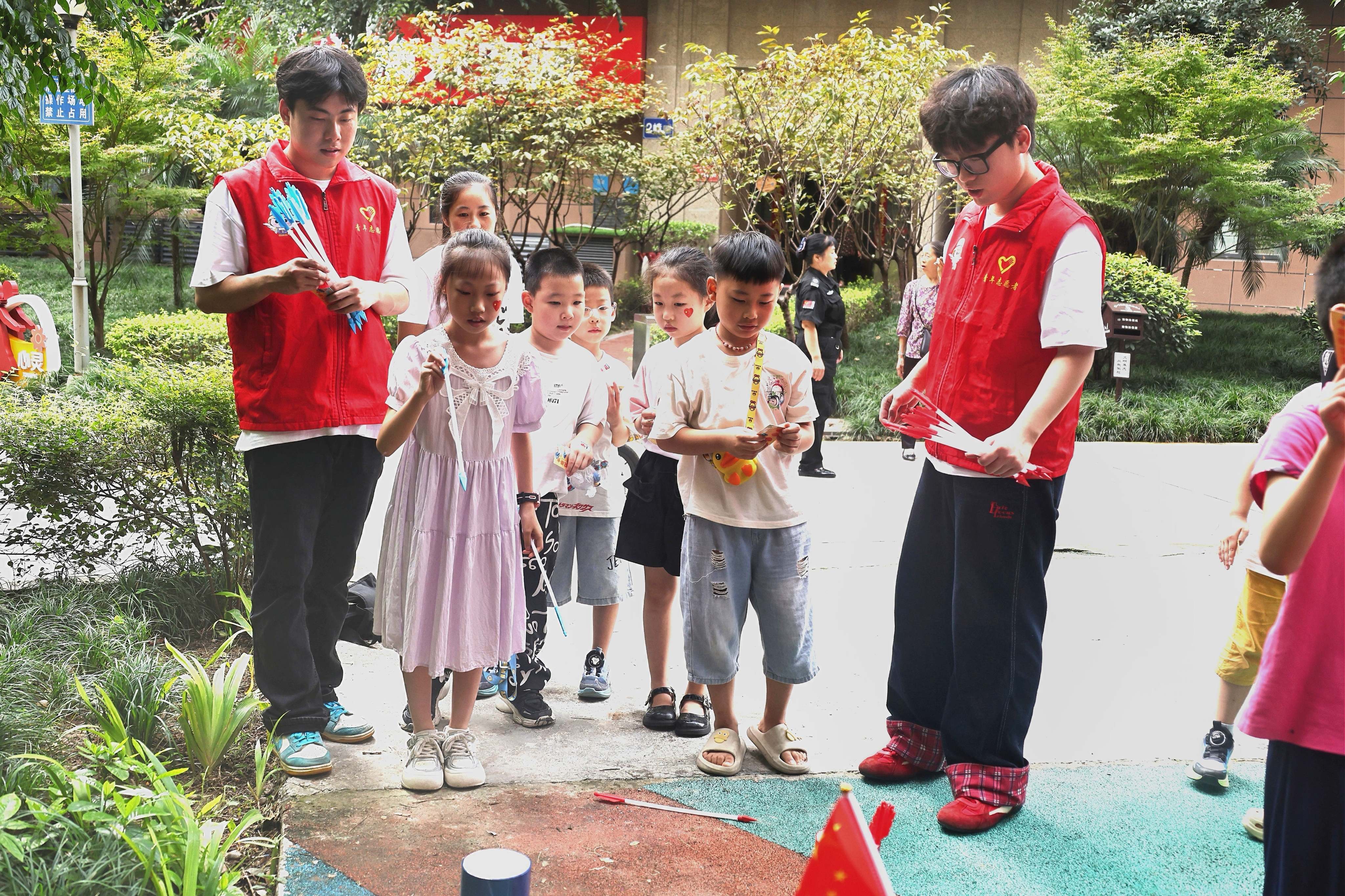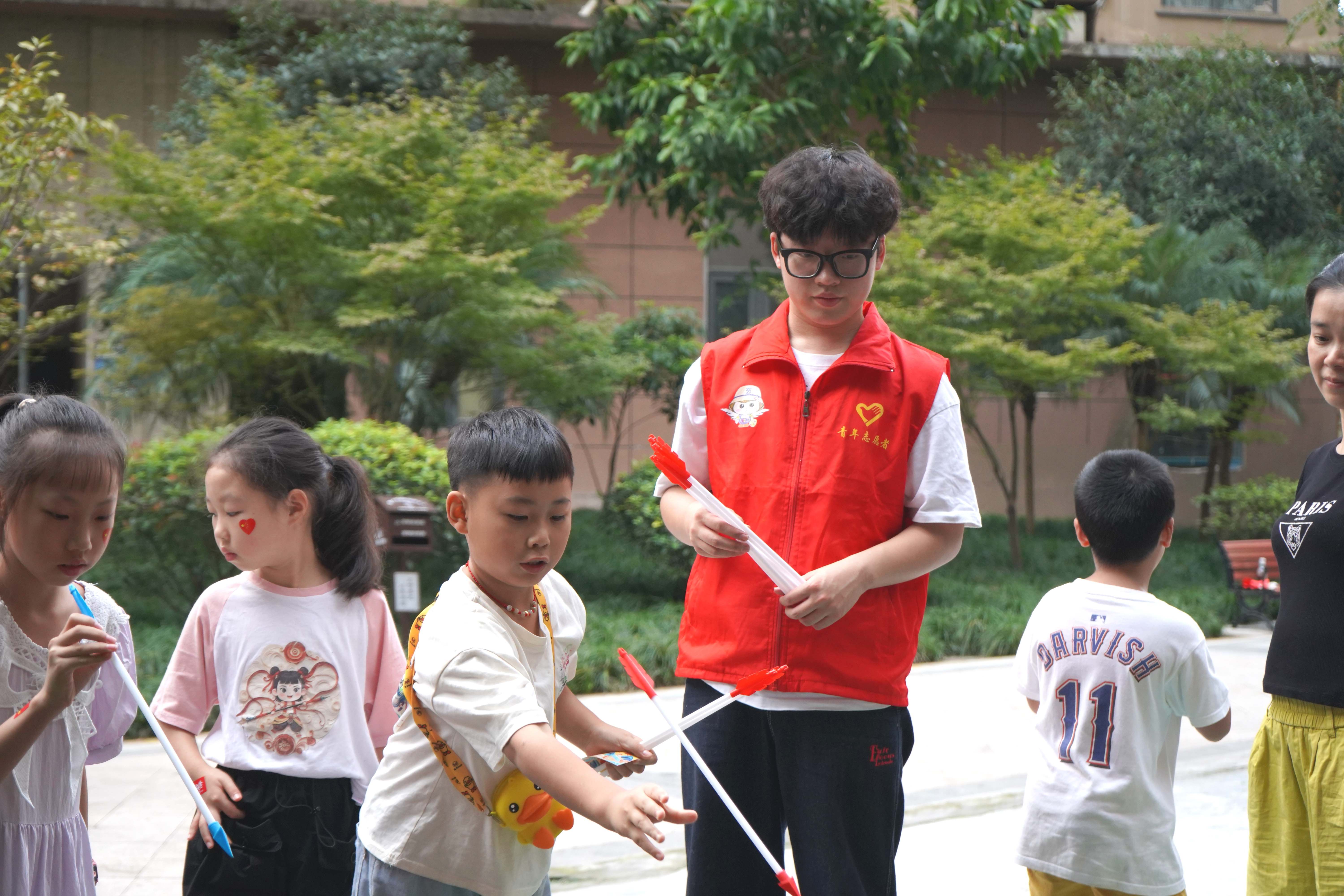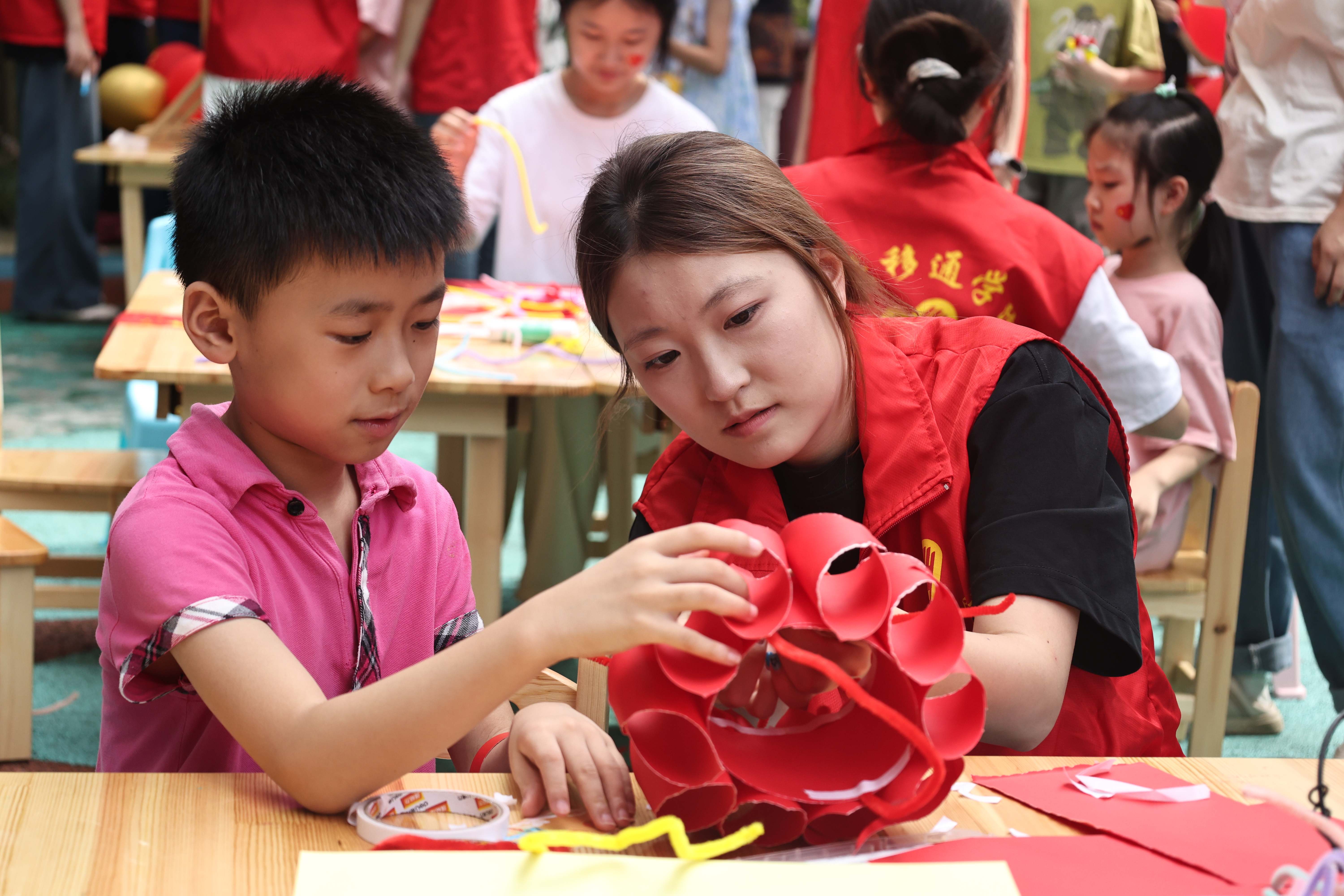 指尖生花,童心向党。活动伊始,签到处排起有序长队,化作社区一道温暖的风景线。孩子们在家长陪伴下签到领卡,志愿者们递上鲜艳的五星红旗贴纸,让爱国情怀的种子,悄然在稚嫩的脸颊上扎根。手工体验区以文化为纽带,成为传承传统、凝聚情感的核心。整齐陈列的创作材料前,志愿者们悉心传授技艺,将灯笼与中国结背后的文化深意融入指尖教学。孩子们忘我投入创作,用双手赋予材料蓬勃的生命力。当一件件饱含心意的手工作品诞生,孩子们高举作品展示的瞬间,不仅闪耀着创造的喜悦,更印证了传统文化在少年心田的鲜活脉动。