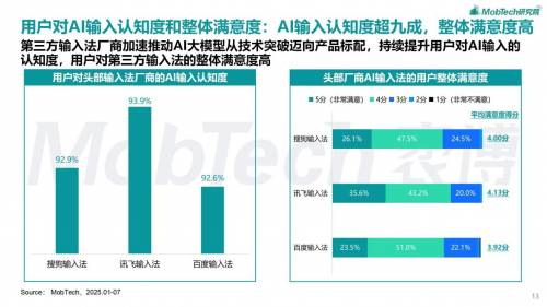 用户满意度方面,多种输入方式的体验特别是AI输入重点影响用户体验,进而影响用户对输入法评价的因素。第三方输入法厂商加速推动AI大模型从技术突破迈向产品标配,有效提升了用户对输入法AI输入的认知度。值得一提的是,讯飞输入法内置有高情商沟通、百变人设、恋爱军师、AI搜索等智能体,用户在输入过程中即可体现多样化的大模型服务。据调研结果显示,讯飞输入法整体用户满意度高达98.8%,位居行业第一。
