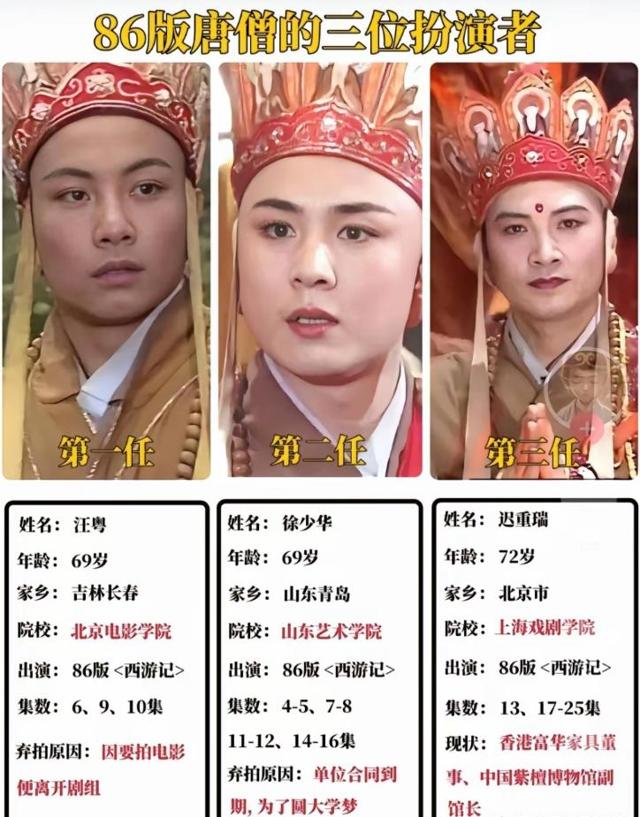我们都知道,86版《西游记》其实有3位唐僧,分别是汪粤、徐少华、迟重瑞,前两位演员都因为种种原因,没能继续拍摄西游记,只有迟重瑞坚持了下来。