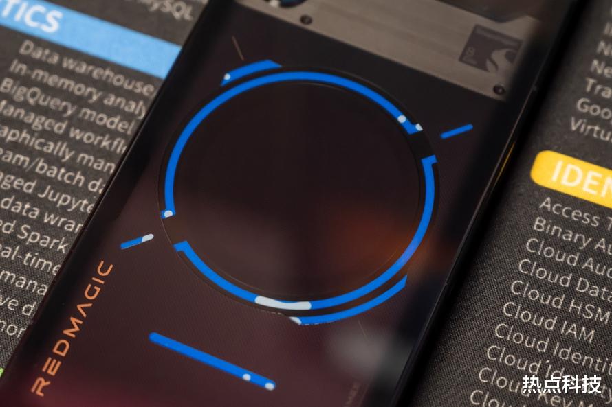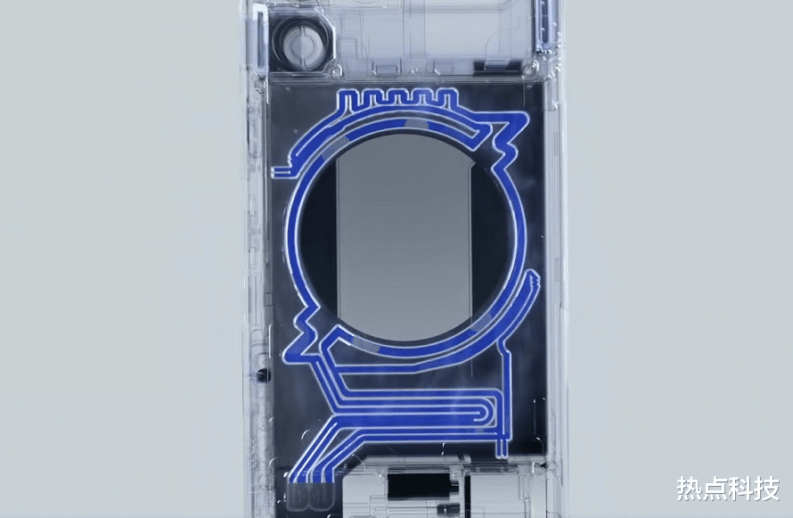 背面这个透明蓝色圆环可不是装饰品,在工作时里面的液体会真的流动起来,从而达到散热的目的。由于冷却液是与电子器件直接接触,除了要有高效的导热效率以外,还需要有极高的绝缘性。根据红魔官方的介绍,里面流动的冷却液是AI服务器同款氟化液,氟化液的液态范围在-60℃-180℃,冬天同样可以正常使用。