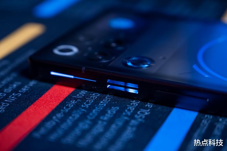 先聊外观,红魔11 Pro+这次带来了“眼前一亮”的变化,主要的改变体现在手机后盖,手上这款氘锋透明版本,在原有的透明后盖基础上,加入了可以看得见的蓝色水冷,并且采用了更贴合电竞风格的圆环+线条的设计风格,背面的酷炫感进一步加强。
