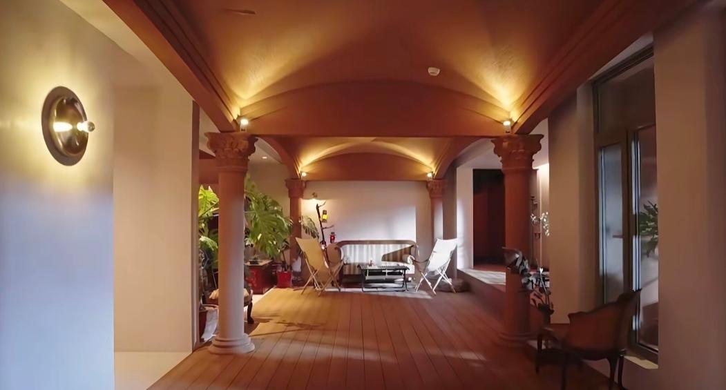 她曾在社交平台分享北京燕郊的豪宅,设计融合中西方美学,从仿修道院走廊到老物件屏风,尽显独特品味