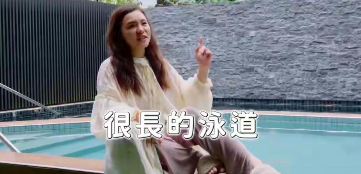 房子造价不菲,她亲自设计,配备大花园、车库、游泳池及几十米泳道。客厅拥有整面落地窗,花园景致尽收眼底。