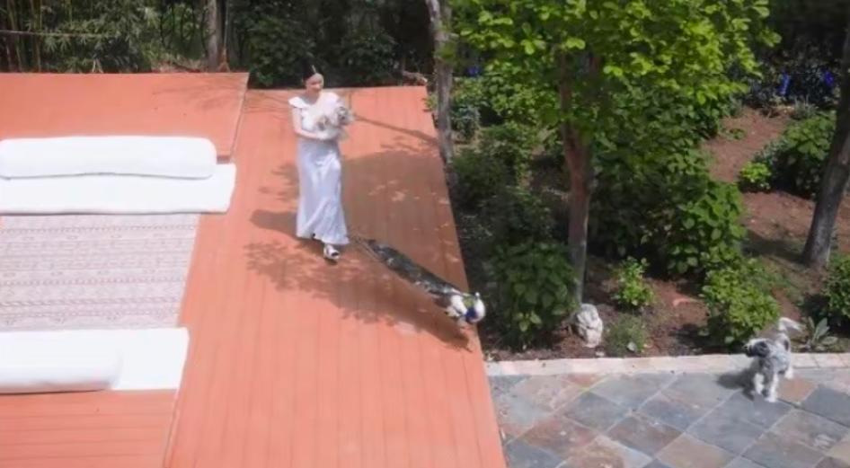别墅内影音厅、工作室、衣帽间一应俱全,庭院甚至饲养珍稀孔雀,生活奢华。