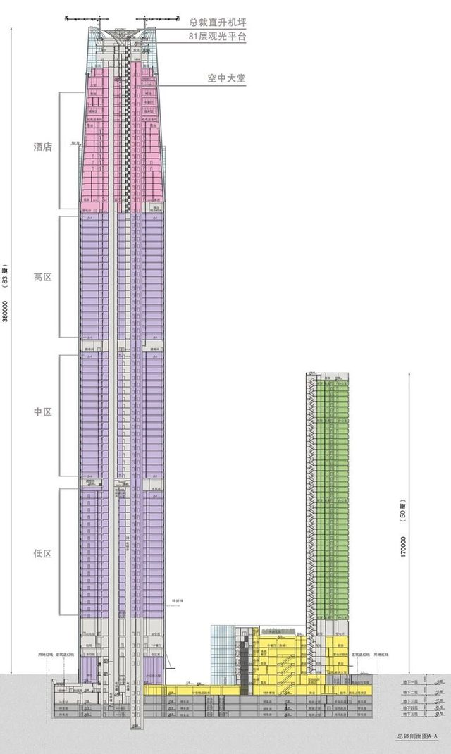 龙光世纪的功能布局同样考究:63层以下为A级办公区,63至80层引入五星级酒店,81层设有观光平台,顶层还配备了南宁首个空中总裁直升机停机坪。尤为特别的是,酒店大堂被设置在80层,让宾客从踏入的那一刻起,就能在320米高空尽览城市全景。