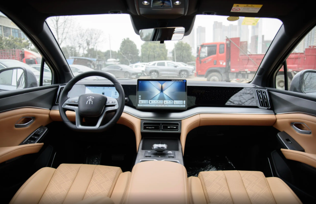 科技质感的话,2025款宋L DM的表现其实比较一般,它也只是配备了10.25吋的全液晶仪表和12.8吋的中控屏幕,显然在车内的科技氛围感上,2025款宋L DM着实有着不俗的表现,而且中控屏幕的材质还是LCD,在UI设计层面,还是没啥问题的,简洁的屏幕设计风格,在操作起来的时候也没有明显的卡顿情况出现,同时在功能配置上,2025款宋L DM则采用了百度导航和5G车联网,以及OTA升级和语音识别系统等等,丰富的功能,让我们在日常用车的时候能够拥有不错的便捷性。