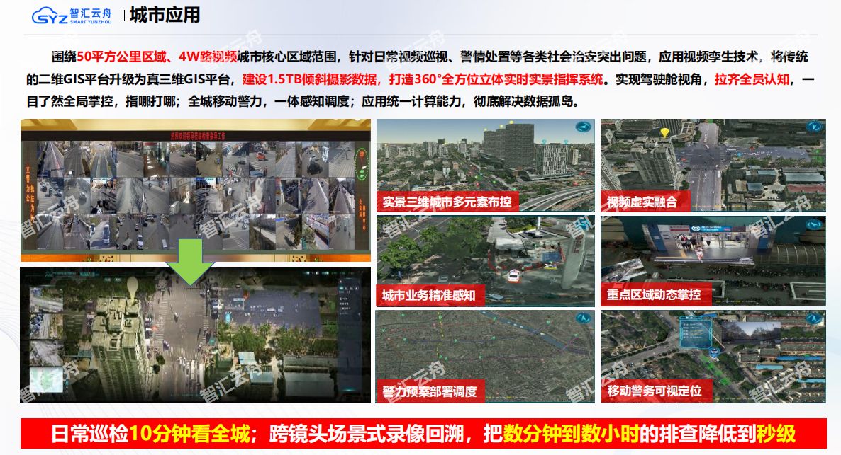 为响应上述政策要求,聚焦城市安保指挥领域的实际业务需求(涵盖日常巡视、事件研判、警力布控、应急处置、实战指挥等核心环节),智汇云舟依托视频+数字孪生技术,打造 “1+1+1+N” 视频孪生智能体,通过深度集成三维实景、视频监控、风险一张图等数据,利用AI多模态技术,实现 “实时视频+三维地图模型” 的AI视频孪生应用。