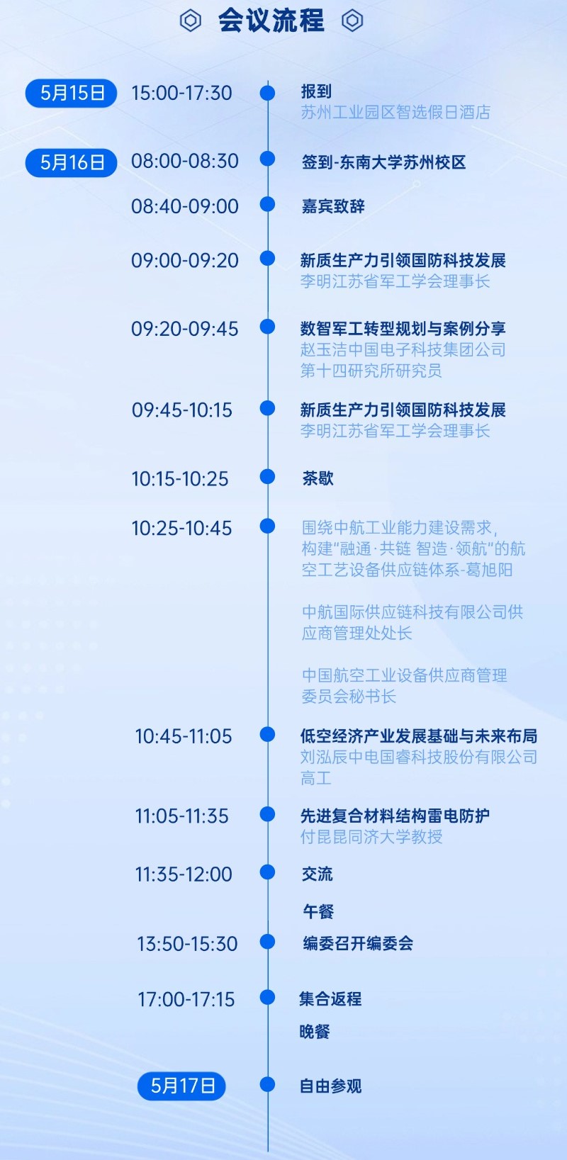 以“数智驱动,融合创新-共筑国防与低空经济新质生产力”为主题,由江苏省军工学会、江苏省智能制造工程学会、江苏省工业经济联合会、《机械设计与制造工程》杂志、江苏机械门户网联合主办的“2025 数字军工产业论坛暨人工智能赋能国防科技工业、低空经济新质生产力研讨会”将于2025年5月15-17日在“第三届全国先进技术成果转化大会”期间举办。