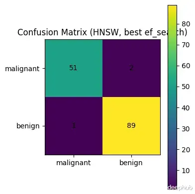 在乳腺癌数据集上,HNSW达到了和暴力搜索相同的测试准确率和F1分数(≈0.979 / 0.983),查询时间却只有1/17(≈5毫秒 vs 89毫秒)。这验证了我们这篇文章的核心论点——非结构化空间中的结构化搜索——从理论变成了实实在在的性能提升。