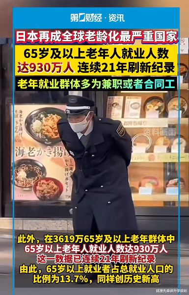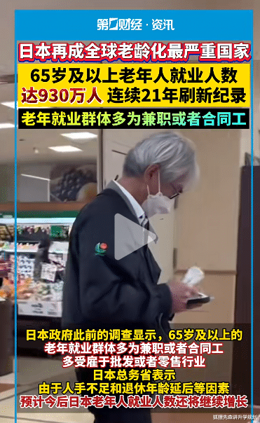 在我们印象里,“退休” 就该是钓鱼、跳广场舞、带孙子,但在日本,“活到老干到老” 早不是新鲜事,而是几百万老人的日常 —— 有的是为了活下去,有的是在工作里找回了退休后没有的意义。