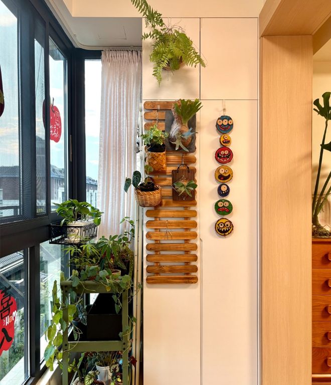但你别说,白色和木色相互搭配,不仅很适合家里偏原木的现代风格,更是能收纳下更多的杯盏碗碟,留出台面一处水吧,也丝毫不会觉得乱。