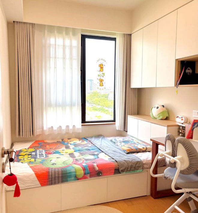 儿童房的面积要更小一些,这里的做法干脆是直接选择了榻榻米床。