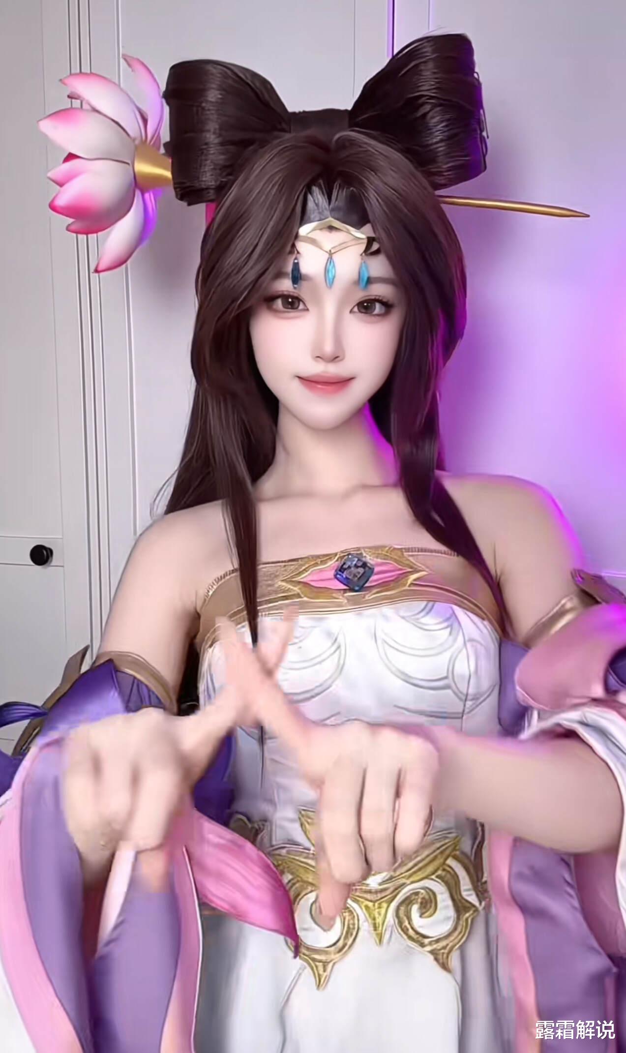 能看到她锁骨是可以清晰可见的,再搭配她甜美的长相,这个cos作品,看到的玩家可以说是心旷神怡。