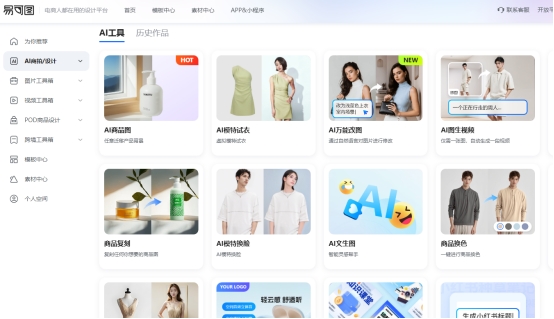 易可图是一个很适合电商卖家或者做设计工作的朋友使用的一款 AI 设计平台,除了可以实现图片编辑和AI商拍等功能外,也可提供有图片翻译功能。具体功能及操作步骤如下所示: