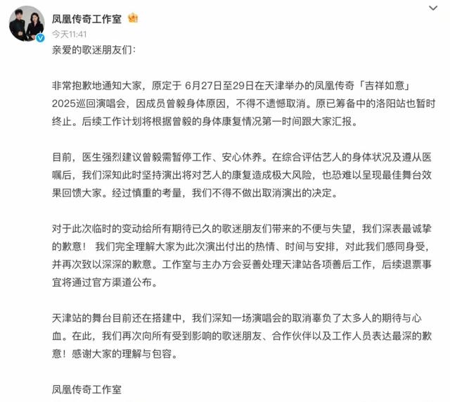 表示今年凤凰传奇的演唱会全部取消了,后续再看情况。