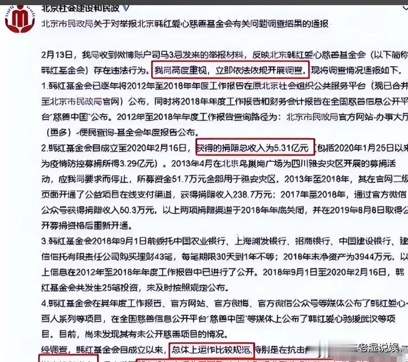 随后北京市民政局介入,对韩红基金会的账目进行全面核查。