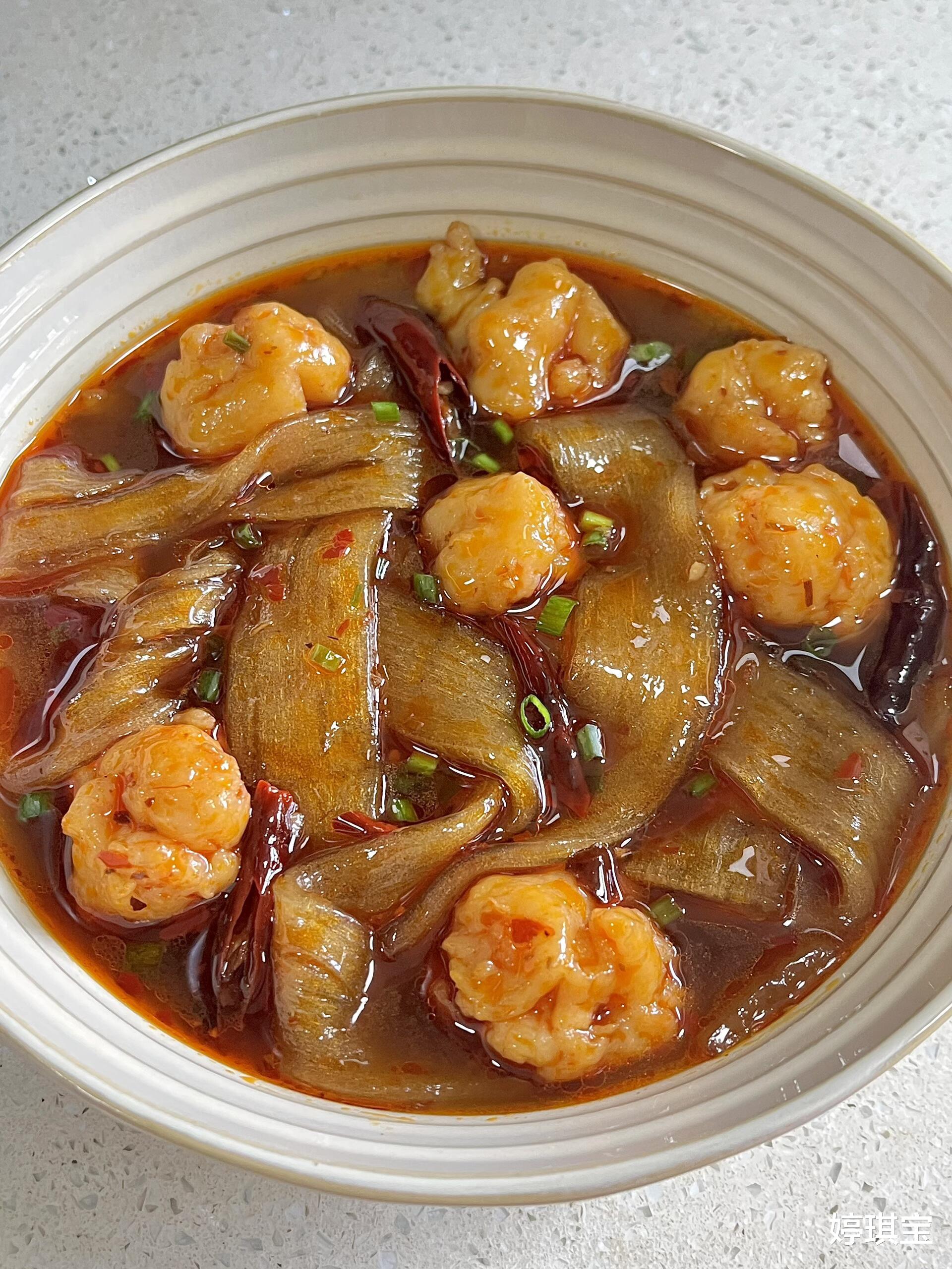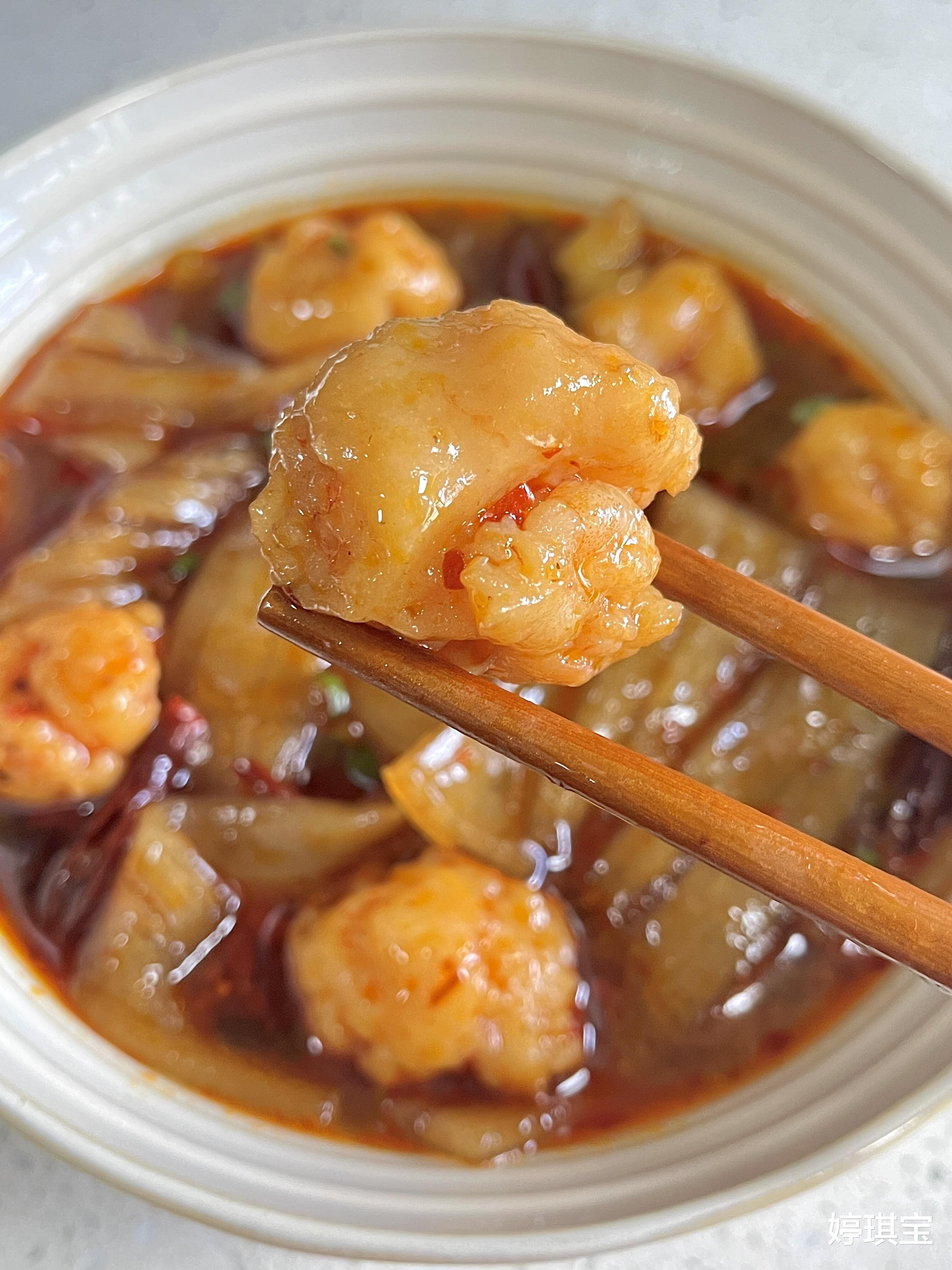 记得第一次做这道菜时,我把宽粉煮成了糊状,虾滑散成了虾粥。朋友们却吃得津津有味,还说:"这麻辣粥,别有风味!"后来在川菜师傅的指点下,终于掌握了宽粉的火候——要煮到透明却仍带韧劲,才是最佳状态。