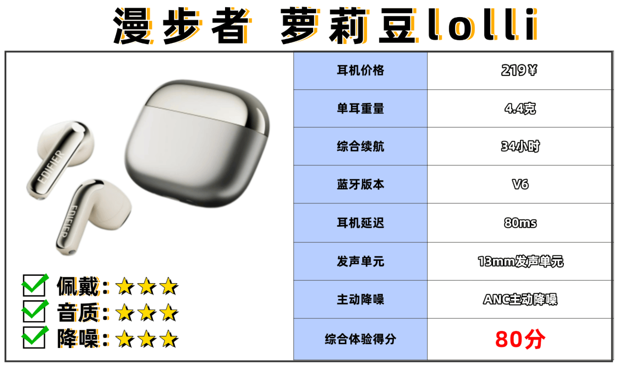 9、漫 步 者 萝莉豆lolli蓝牙耳机