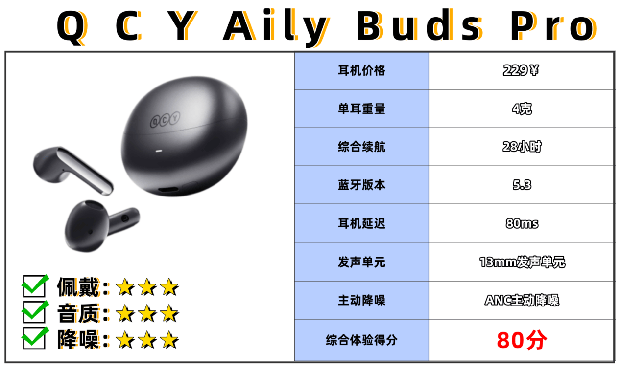 10、Q C Y Aily Buds Pro+蓝牙耳机