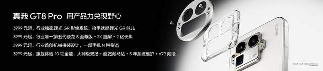 一同亮相的真我GT8,则是定位“最强标准版”。除配备与Pro同款的理光GR影像系统和2K 144Hz苍穹屏外,在性能影像上也带来了越级突破,骁龙8至尊版、电竞独显芯片R1、5000万超光影潜望长焦等配置,将核心的旗舰体验带给更多用户。真我GT8将于10月21日16:40正式开售,起售价2899元。
