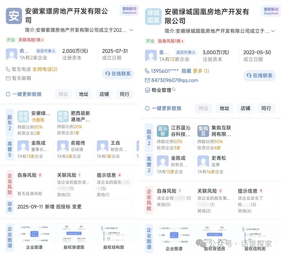 通过查询得知,背后的公司并没有显示为绿城中国,开发商是安徽紫璟房地产开发有限公司,大股东为安徽绿城国凰房地产,而且位置也不是在经开区,是在肥西县的,位于在龙湖泊萃东侧,具体在肥西县桃花镇锦绣大道与蓬莱路交口西南侧。