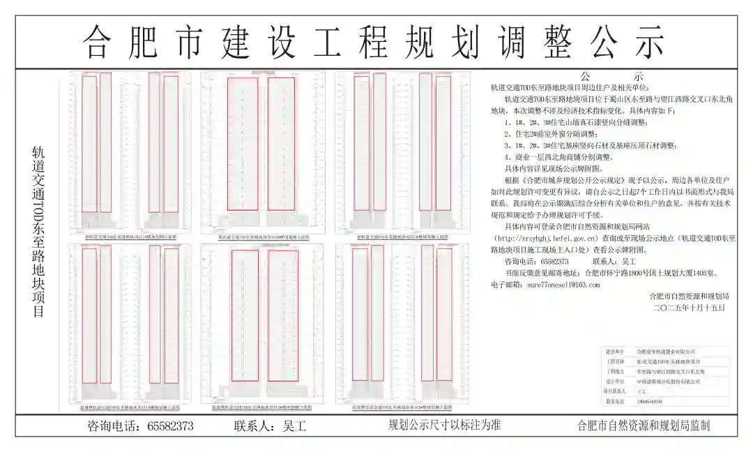 合肥轨道交通TOD东至路地块规划方案调整公示,项目位于蜀山区东至路与望江西路交叉口东北角地块,本次调整不涉及经济技术指标变化。