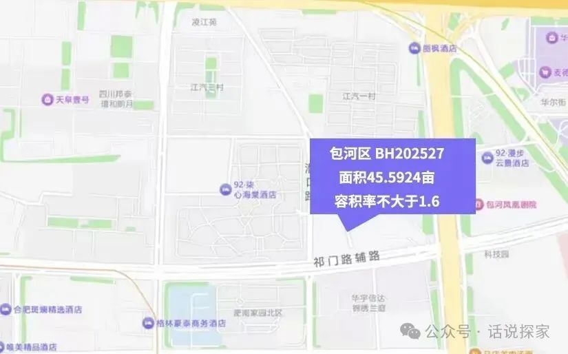 包河区BH202527号地块,占地面积45.5924亩,规划为居住用地,容积率≤1.6,起叫价1100万元/亩。地块位于包河政务东板块,周边就是淝淝南家园、锦绣兰庭、江汽一村等成熟小区,西侧不远处即是四川邦泰璟和朗月、意禾橙庐、天阜壹号等新房项目。