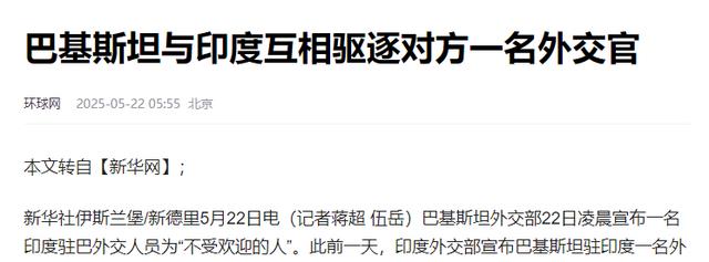 5月21日,印度外交部率先“出招”,宣布驱逐一名巴基斯坦驻印外交官。