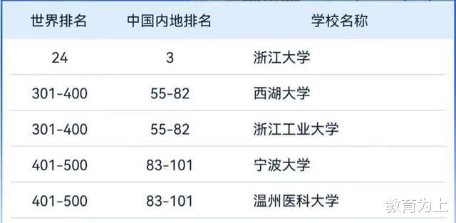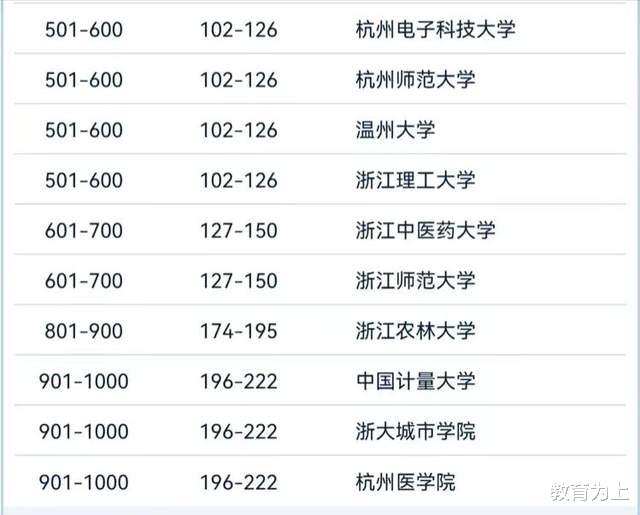 在这份榜单中,共计15所浙江省高校上榜,上榜高校既包括浙江省第一高校的浙江大学,也包括浙江省属重点院校的温州医科大学、杭州电子科技大学等。