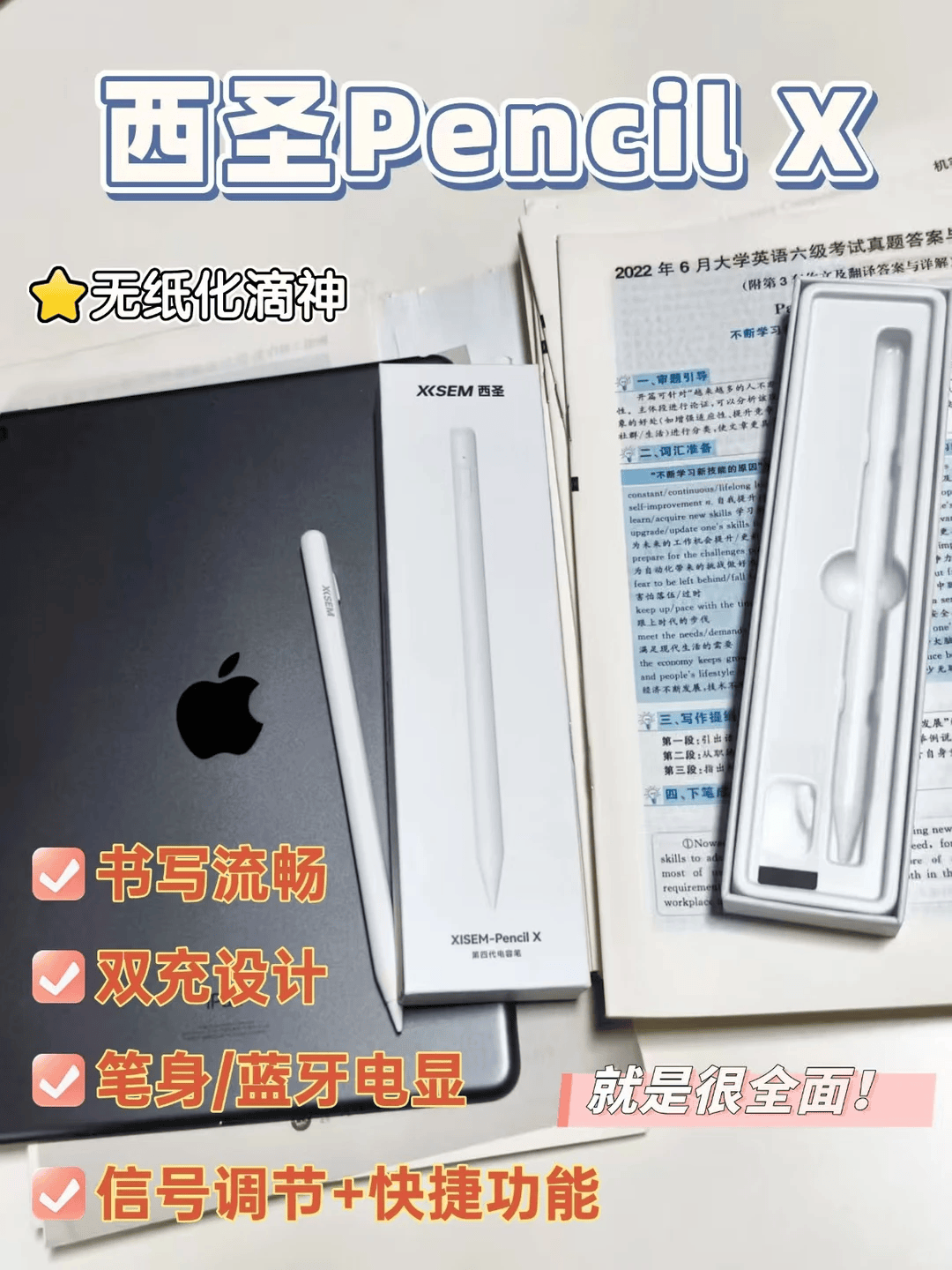 平板用户在选择电容笔时不得不在“高价原装”和“低质平替”之间艰难取舍:原装Apple Pencil价格高昂,令不少用户望而却步;而在电容笔市场中,许多低价平替产品虽然与原装外观接近,但核心技术缺失,常出现断触、延迟、触感不灵敏等问题,严重影响使用体验。为了解决这一局面,全新西圣Pencil X突破行业,将“原装级”技术全面下放,颠覆性打造第4代电容笔,以极致性能实现媲美甚至超越原装的流畅书写体验。