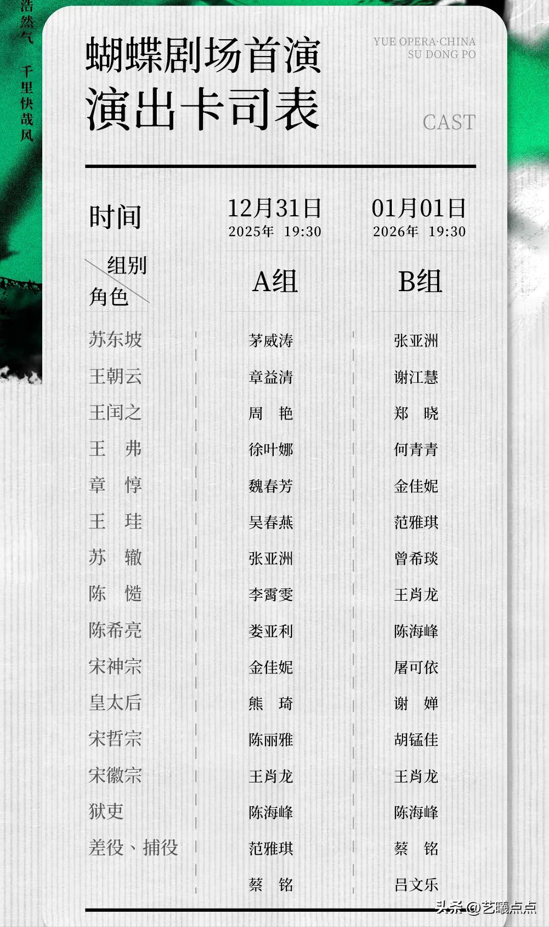 浙江小百花精心创排的新编大戏《苏东坡》—— 即将在跨年夜于杭州蝴蝶剧场首演!2025年12月31日和2026年1月1日A组、B组各演一场。