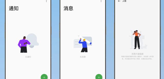 在系统 App 的空白界面,阿绿也放了不少人物插图。
