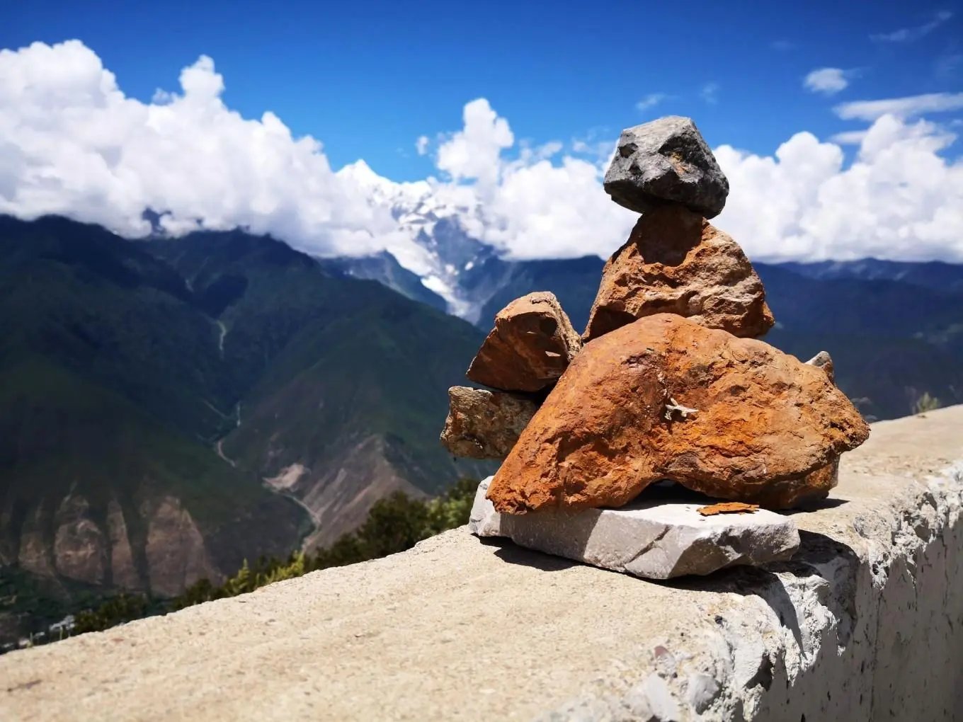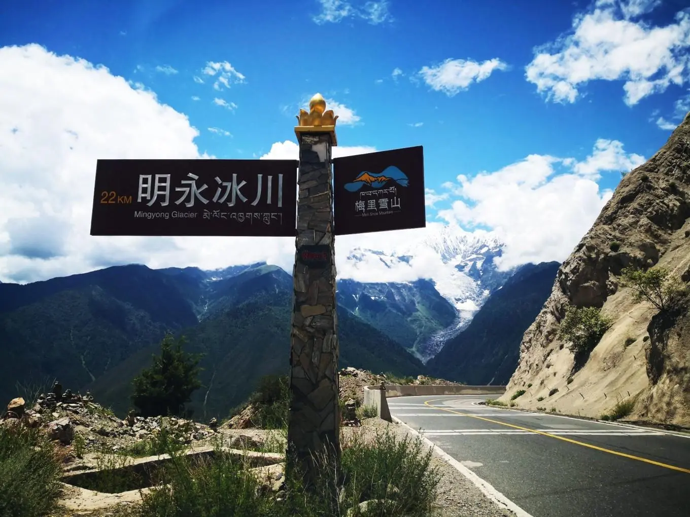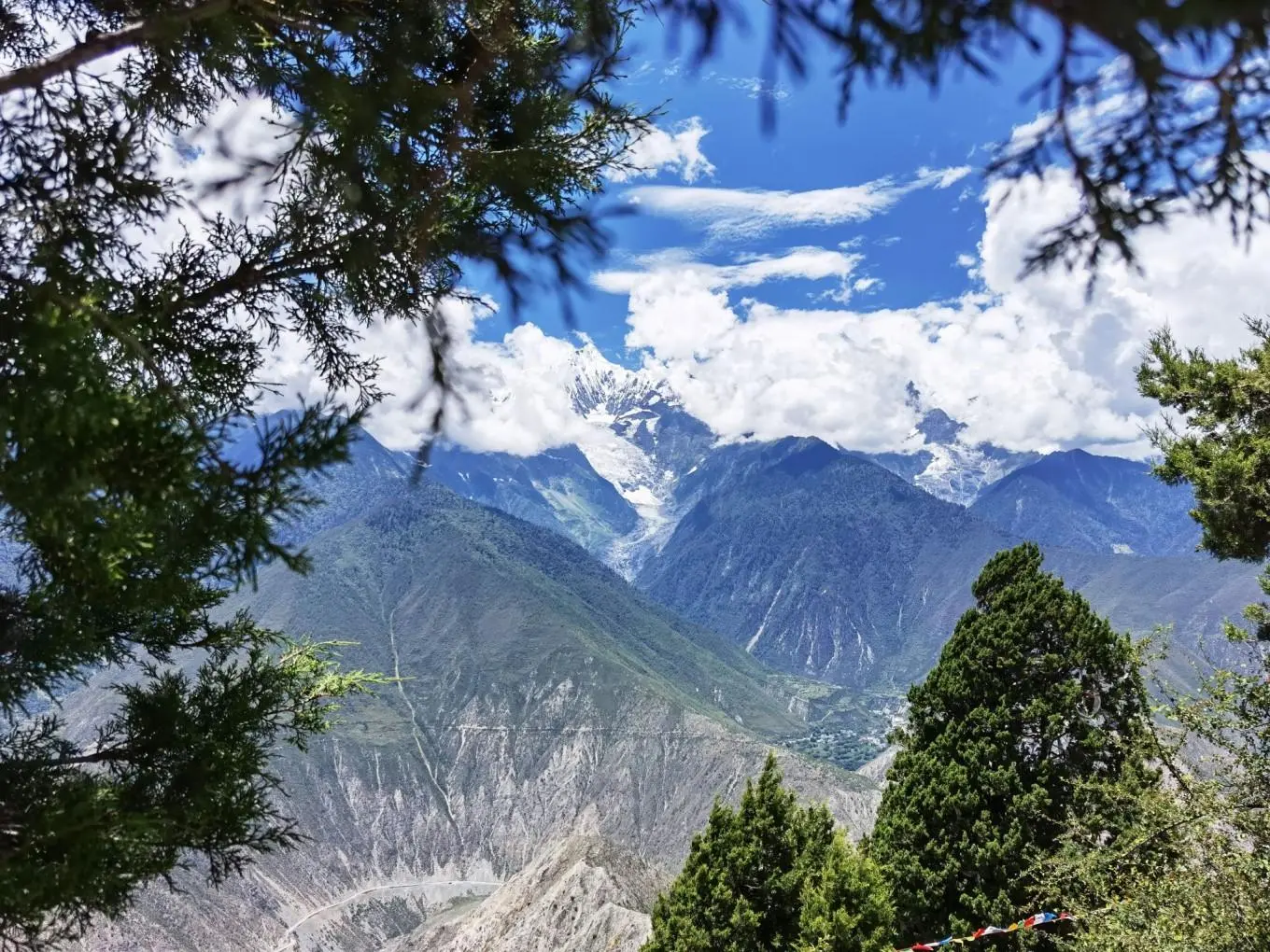留下我们的期待,也留下今天未能和我们一起成行的朋友的期待,让我们的玛尼堆静静守候奇迹的出现。穿过绿荫看见最近的卡瓦格博峰的身影,下一站我们近处欣赏明永冰川的风采。