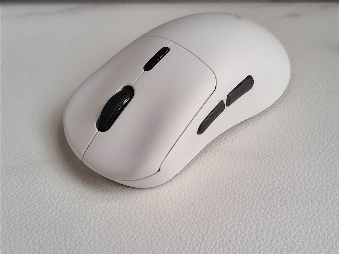鼠标整体线条流畅自然,背部弧度恰到好处地贴合手掌,握持感极佳。对于我这种大手玩家来说,长时间使用也不会感到疲劳。鼠标的右侧收腰设计平缓,大拇指能够舒适地贴合,而左侧的流线型模具则让小拇指和无名指的摆放轻松自然,抓趴混合使用时感觉非常稳固,不会有溜手的困扰。最有意思的是滚轮,200万次TTC滚轮编码器的刻度感非常清晰,"咔哒咔哒" 的反馈声不大,但很干脆,办公时快速翻页特别爽。