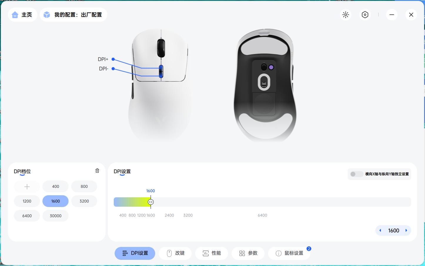 在设置界面,可以看到DPI调节滑条上有7档预设数值,点击对应的数值就可以一键设置为该参数,雷柏VT3配备了旗舰级的原相定制3398(高定版)传感器,雷柏VT3 MAX配备原相定制3950 Ultimate传感,支持10-45000的DPI调节,还可以进行精细入微的调整。