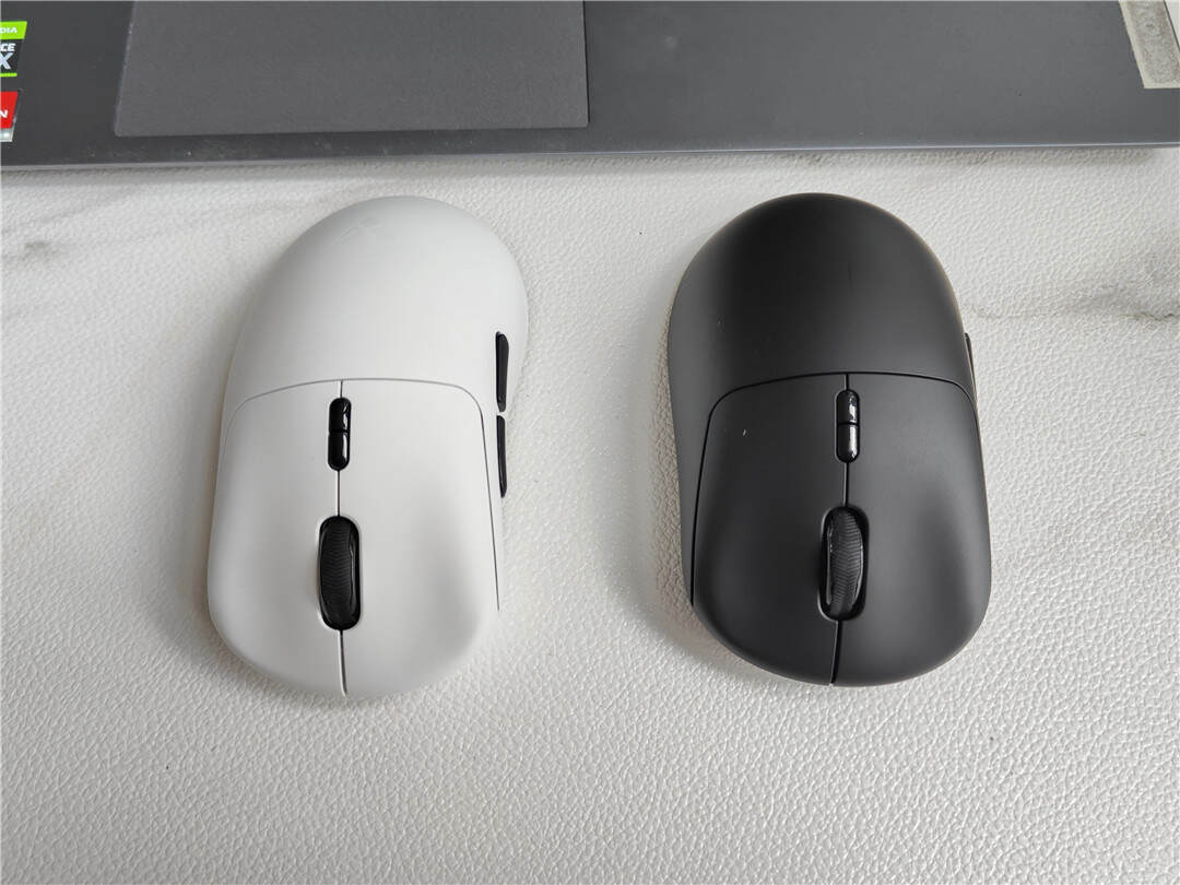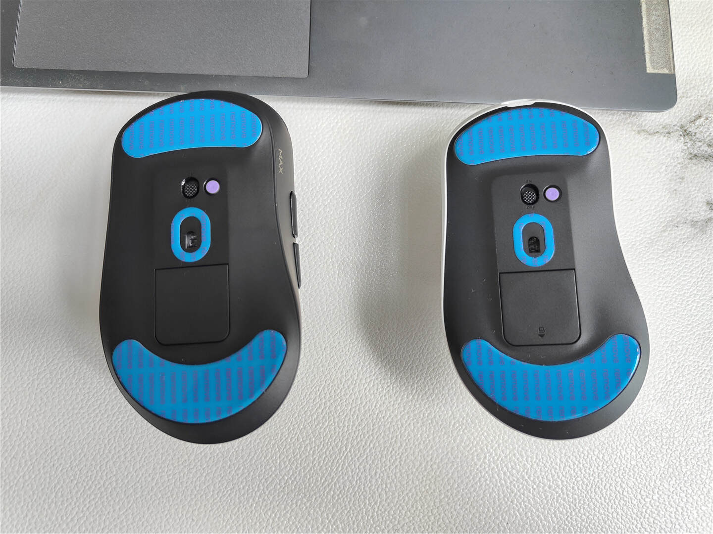 把鼠标拿在手里的第一感觉是 "扎实"。重量约 53g,126x68x42mm的尺寸对我19cm的手来说刚刚好,手掌能完全贴合背部的弧度,就像量身定做的手套,鼠标表面是一种类肤磨砂工艺(星空黑&皎月白),不像镜面那么容易留指纹,汗手党狂喜, 打了一下午游戏,掌心居然没怎么打滑,这点必须好评。